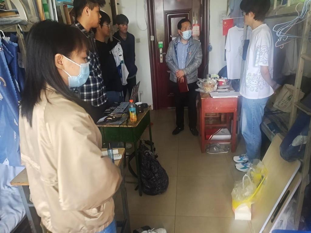张祖成进入学生宿舍,重点了解了学生在学校封闭期间的心理健康状况以及对五一劳动节正常上课的态度、想法,深入同学生交流,学生很理解学校的政策,纷纷表示在疫情形势严峻的情况下,一切以疫情防控为先,做好个人防护,保持心情积极舒畅。同时,张祖成还要求同学们在五一劳动节之际,要弘扬劳动精神、劳模精神,把宿舍卫生清理干净,多参加校园义务劳动增强体质。
