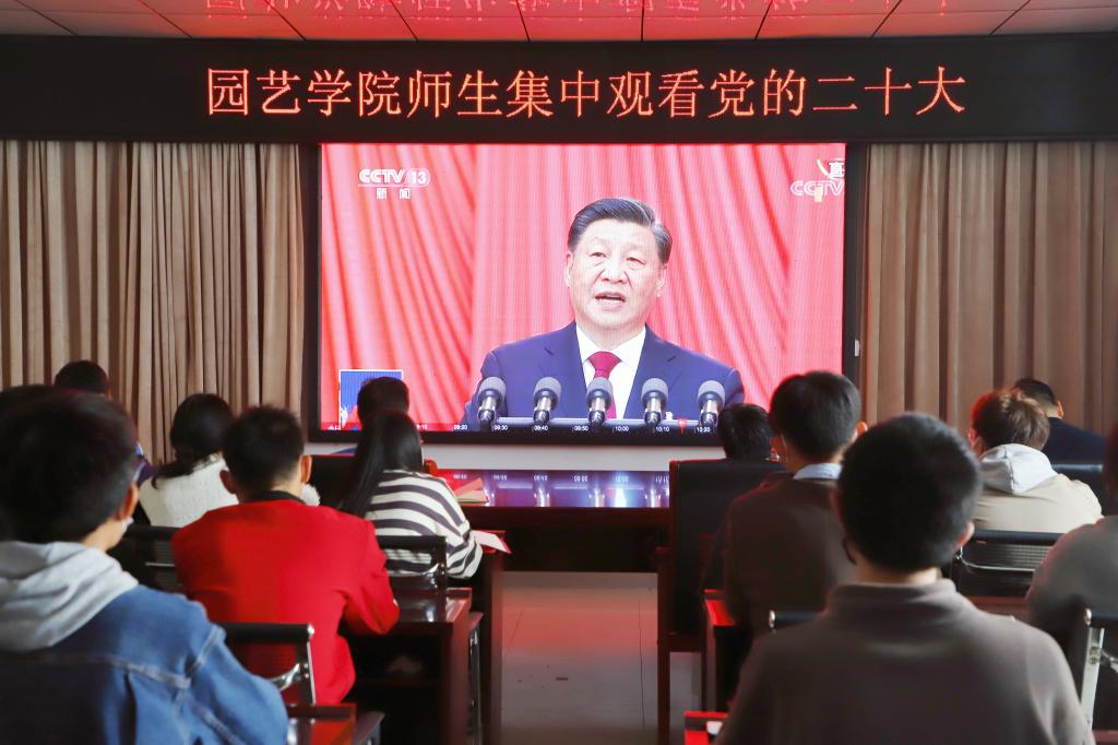 10月16日上午9:50,园艺学院师生在2A322会议室,集中观看党的二十大胜利召开。