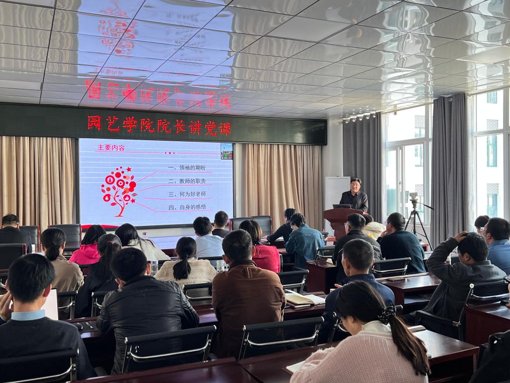 2022年10月18日,园艺学院院长龚守富在2a322会议室,以“当好引路人,争做‘大先生’为主题,为园艺学院全体教职工讲授党课。