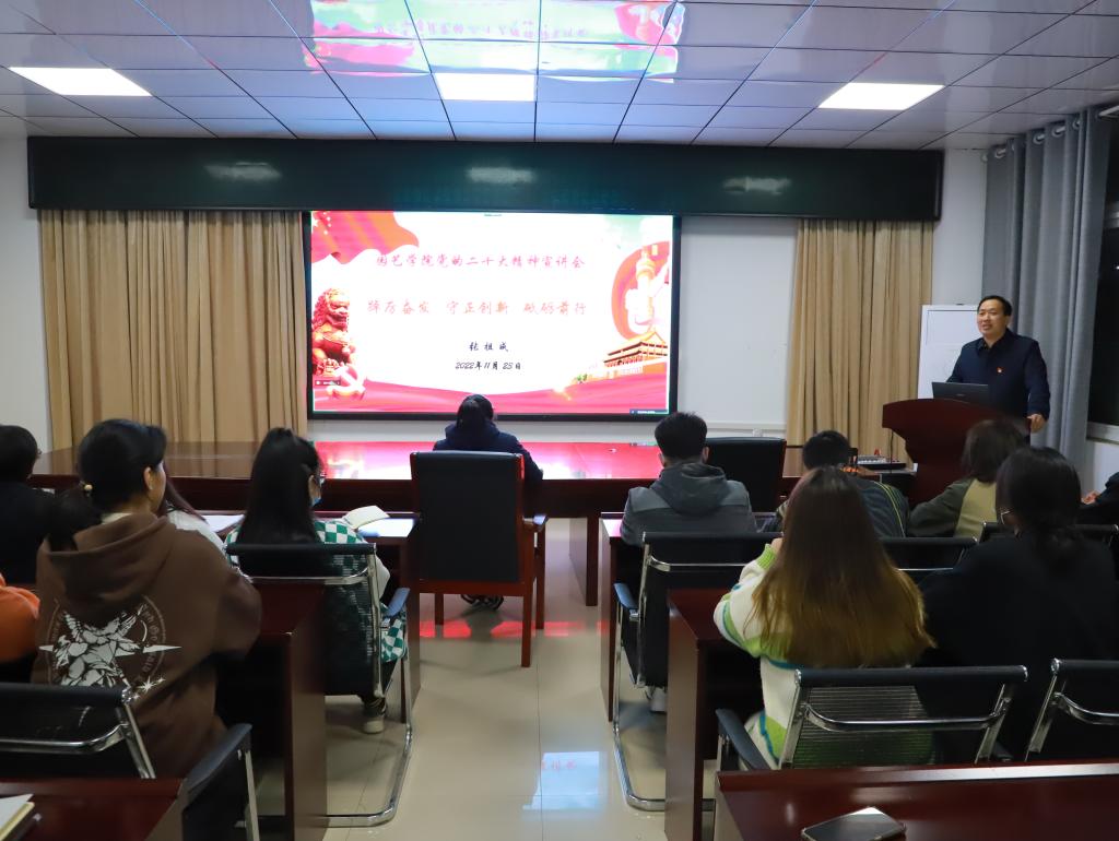 张祖成以“踔厉奋发·守正创新·砥砺前行”为主题展开党的二十大精神宣讲。他指出:学习党的二十大精神要坚持学深悟透,要学深悟透党的二十大精神的十五个方面的内容,要明白党的二十大为祖国伟大的事业指明了方向;学习党的二十大精神要坚持守正创新,我们从事的是前无古人的伟大事业,守正才能不迷失方向,创新才能把握时代,引领时代。敢于说前人没说过的话,敢于干前人没有干过的事情。坚持砥砺奋进,二十大报告指出:“广大青年要坚定不移听党话,跟党走,怀抱梦想又脚踏实地,敢想敢为又善做善成,立志做有理想,敢担当,能吃苦,肯奋斗的新时代好青年,让青春在全面建成社会主义现代化强国的火热实践中绽放绚丽之花”。