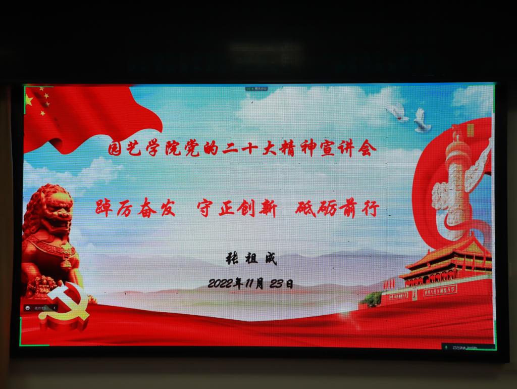 张祖成的宣讲,引导新一届学生干部深学细悟党的二十大精神,结合学习、工作实际,掀起学习宣传贯彻热潮,为园艺青年学子守业赋能、踔厉前行新篇章凝聚奋进力量。(陈丽文)