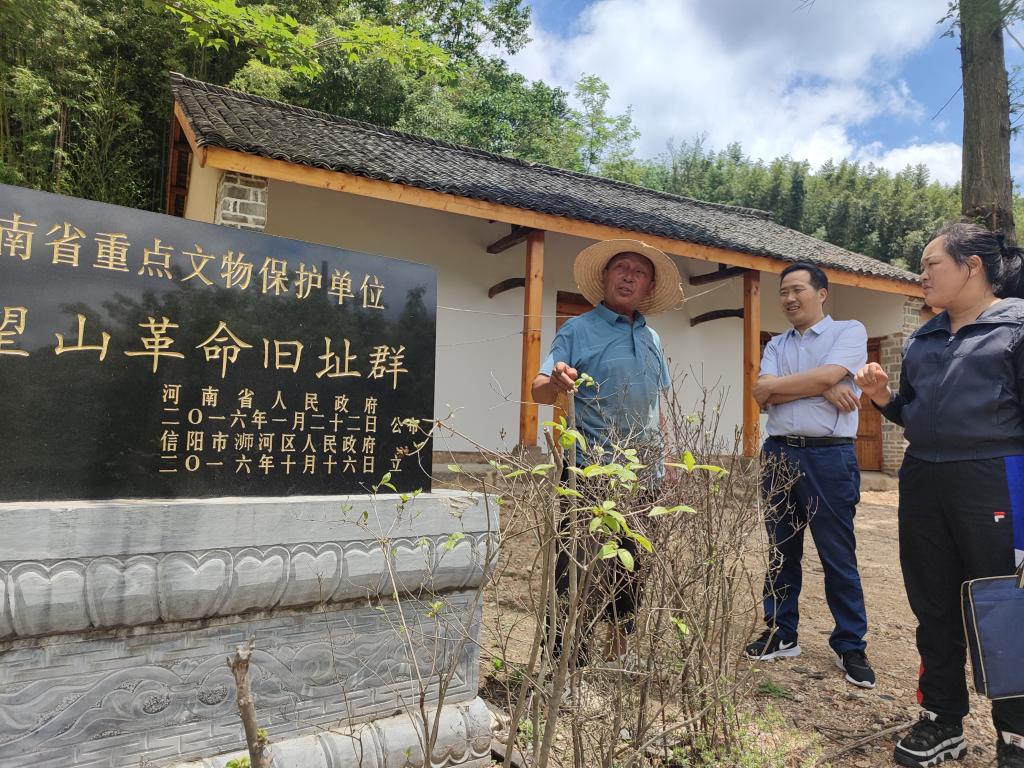 活动中,党员们先后来到中共中原中央局新四军五师师部纪念地、四望山革命旧址群、蔡家湾李先念革命旧址参观。寻访了为李先念司令员牵马的蔡大爷的后辈人,他绘声绘色向我们还原了当年的四望山革命斗争。1939年,四望山会议召开,建立了中共豫鄂边区党委,统编了大别山武装,皖南事变后,李先念带领红四军五师一万五千余人在这里坚持敌后抗日,以险要地形为掩体,神出鬼没的牵着鬼子的鼻子走,打的敌人晕头转向,为大革命取得胜利奠定了一定基础。