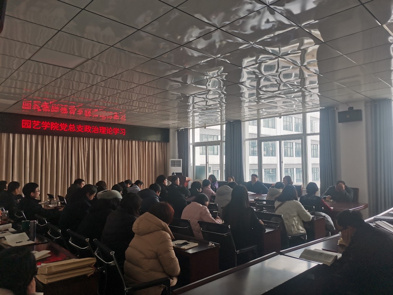 2024年3月5日下午,园艺学院党总支在实验楼2a322开展教职工政治理论学习,全体教职工参会,集体学习由党总支书记杜丽主持。