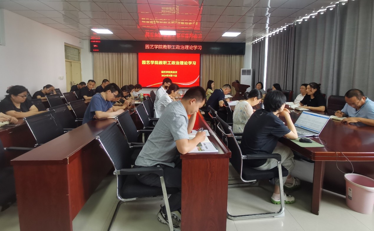 2024年6月11日下午,园艺学院党总支在实验楼2a322召开教职工政治理论学习会,会议由党总支书记杜丽主持,全体教职工参会。