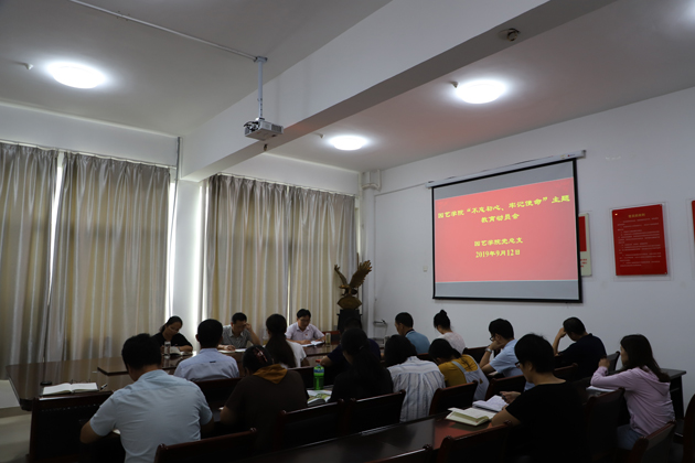 2019年9月12日上午,园艺学院党总支在实验楼2A318办公室召开了“不忘初心、牢记使命”主题教育动员会,学院全体教师党员参加了会议,会议由总支书记张祖成主持。