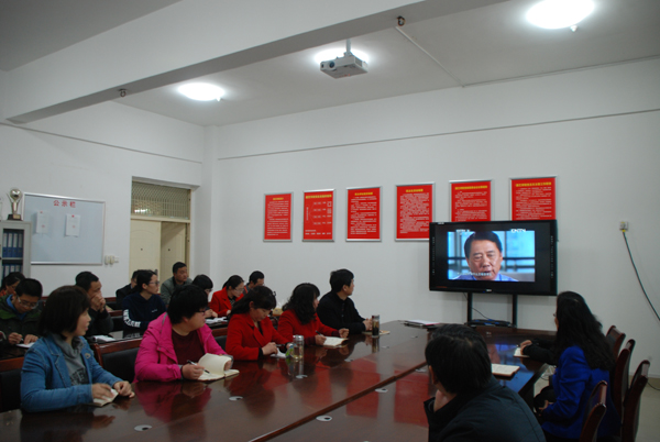活动开始,党支部给师生播放由学校宣传部推荐的系列纪录片之一《大国重器》。播放过程中,每当同学们看到我国的某项机器制造技术取得重大突破的时候,就会感到无比的自豪。在此起彼伏的唏嘘声中,影片观看结束。王院长与师生交流观看感想并希望大家利用课余时间认真学习观看,《筑梦中国》、《一带一路》、《将改革进行到底》等系列纪录片,旨在创新师生政治理论学习形式,提高学习效率,提升学习效果。