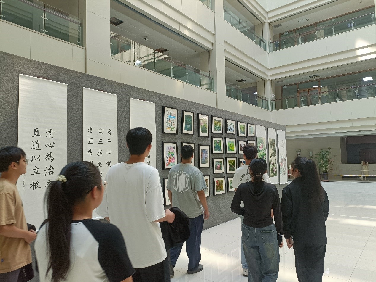 画展在图书馆一楼展厅举行,现场布置简洁大方,展出的书画作品内容丰富、形式多样,既有描绘廉洁奉公、勤政为民的古代先贤形象,也有反映现代党员干部廉洁自律、为民服务的先进事迹。每一幅作品都蕴含着深厚的廉洁文化内涵,让参观的教职工们深受启发。