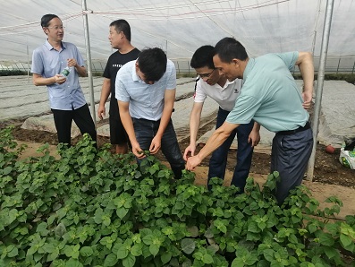 2020年8月26日,河南省科技特派员徐函兵、滕云、王艳平、马克群、冯世杰组成服务队到固始县亚马逊花木园林有限公司开展科技服务,科技人员就水灾后,温室栽培三角梅和栀子的夏秋管理提出建议。