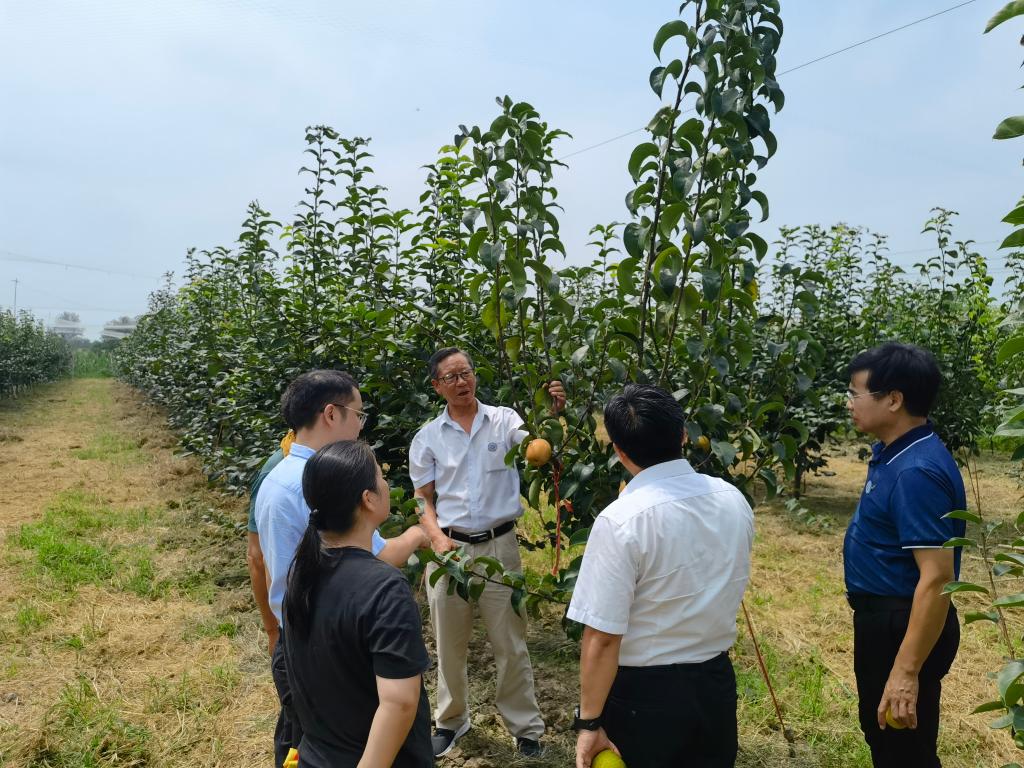 服务团队一行首先来到息县三分田翠冠梨种植基地开展科技服务。针对基地的梨园管理进行了调研和指导,据工作人员反映,梨园管理中由于修剪无人指导,存在梨树树形较乱、虫害严重、梨园杂草较多等问题。服务团对梨园果树生长状况进行了考察后,针对不同生长期的梨树修剪进行了现场示范,并手把手指导梨树修剪,对梨树的害虫危害情况如何配药、如何喷施进行了详细讲解,同时指出梨园应加强肥水管理,保证肥水供应。