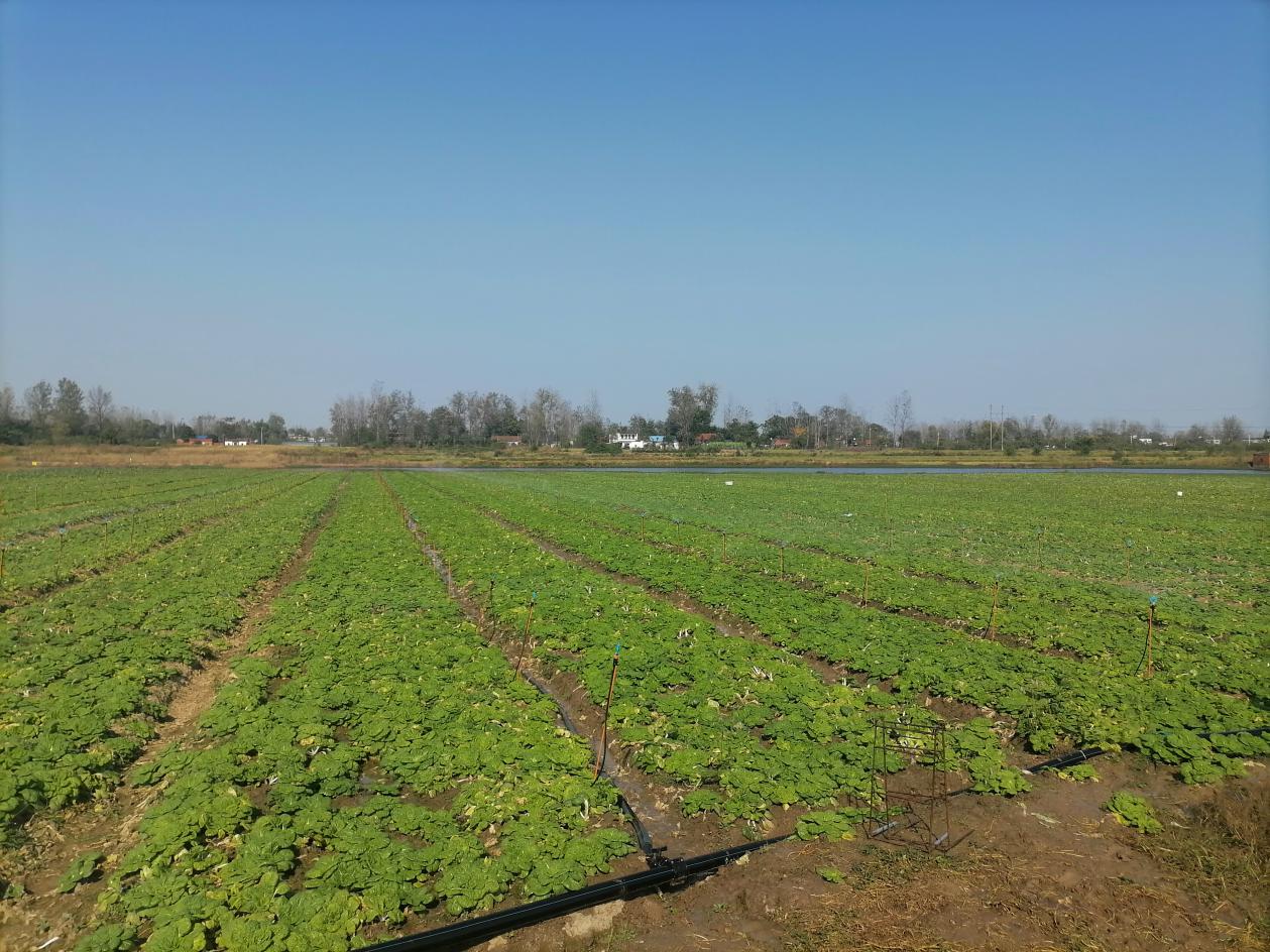 王昊教师根据实地观察掌握到的状况,结合俊农合作社负责人李俊谈及的问题一一进行了细致的科技指导,同时推荐了一些适合信阳地区栽培种植的不同品种特征的黄心菜进行试种比较,并针对该基地采摘打包已完成、装车临售前的贴标蔬菜进行了农残抽样检测,详细讲解了农残快速检测试剂盒的使用方法。