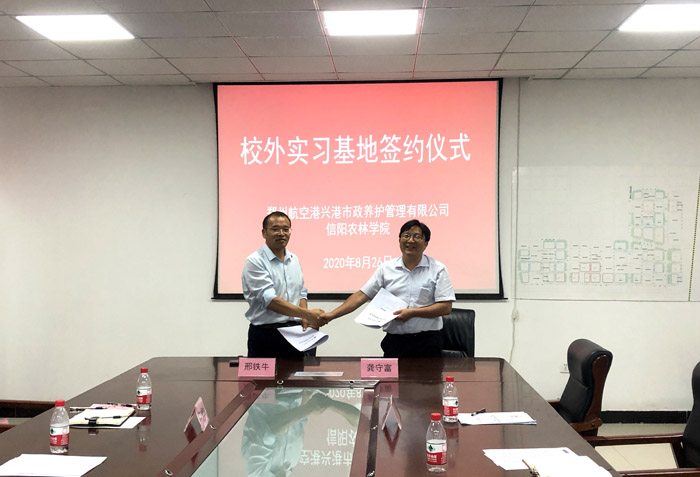 2020年8月27日,应郑州航空港兴港市政养护管理有限公司邀请,园艺学院院长龚守富及园艺专家范宏伟、胡汉升、岳建华一行4人前往兴港市政公司考察并签订校企合作协议。