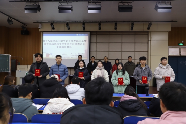首先由园艺学院第十八届团总支副书记李萌汇报上届团总支学生会一年来的工作情况,然后由学院各位领导老师向十八届团学干部们颁发荣誉证书,以表达对他们工作的认可。随后陈娟娟和张健老师宣布新一届团总支学生会及大学生自律委员会的干部名单。新一届学生会主席梁超代表团学干部们进行表态性发言,表达了对十八届团学干部们的敬佩,同时对自己及新一届团学干部们提出了要求。蔡东升老师对各组织部门进行了全面严格的要求,并对各部门的工作进行了规划。