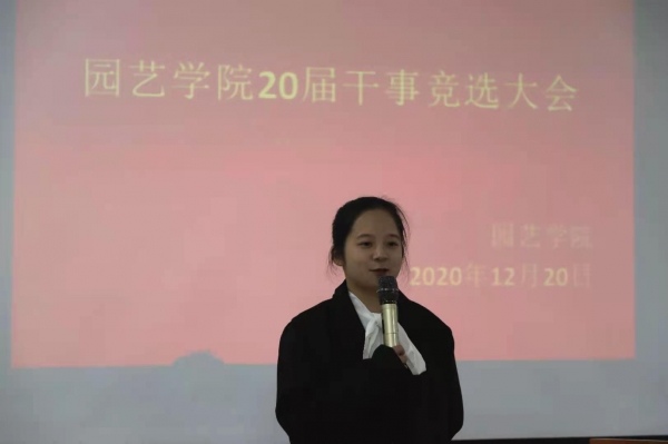为能给新一届团总支学生会及大学生自律委员会各部门注入新鲜血液,2020年12月20日,园艺学院在二教306举办第十九届团学干事竞选大会。参加本次大会的学院主席团成员、各部门负责人及20级各班同学。