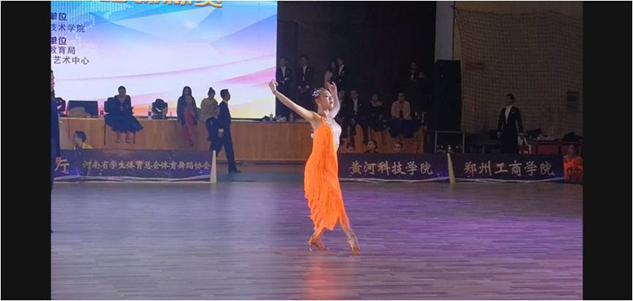 本次比赛共有来自省内20多所院校和团体、1000余名选手参赛。在赛场上,张燕同学奋力拼搏、勇于挑战,表演了热情奔放的拉丁舞和柔美大方的摩登舞,赢得了全场评委观众热烈掌声和一致好评,获得拉丁舞组第一名(冠军)、摩登舞组第二名(亚军)。此次比赛,充分展示了beat365在线平台官网大学生积极向上的青春风貌和校园文化建设的成果,扩大了学校影响力。学生们通过比赛开阔了视野、交流了技艺、找到了不足,有利于提升beat365在线平台官网体育舞蹈整体水平,促进学生身心健康发展。同时,展示了beat365在线平台官网体育舞蹈项目的实力,提升了学校的知名度和美誉度。
