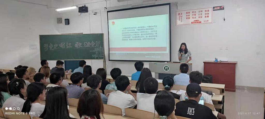 本次团日活动以集中和分散相结合的方式进行,园艺(观赏)(普本)19、园艺(普本)19、园艺(对本)19、园艺(普本)20-1、2班 、园艺(观赏)(对本)20-1、2班共200余人在2教206集中进行,其他班级分散在其它教室进行。园艺(普本)19级团支部书记孙思路以“知史爱党,知史爱国”为主题为同学们阐述了学习党史的重要性。