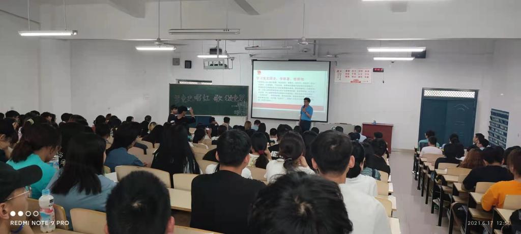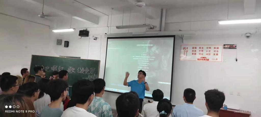赵一鹏指出:党的奋斗历程岁月如歌,党的丰功伟绩举世瞩目。颂唱红歌是爱党爱国的真情体现,是学党史感党恩的重要方式,我们要在唱红歌中感恩我们党的英明伟大,在红歌的激励下坚定自信。希望同学们要学史明理,听党话,跟党走,做奋进新时代的好青年;要在建党百年纪念活动中,学唱红歌、唱响红歌,树立远大理想,担当时代大任。随后赵一鹏领唱了“没有共产党就没有新中国”,师生在歌声嘹亮中结束了一场有意义的联系班级团日活动。