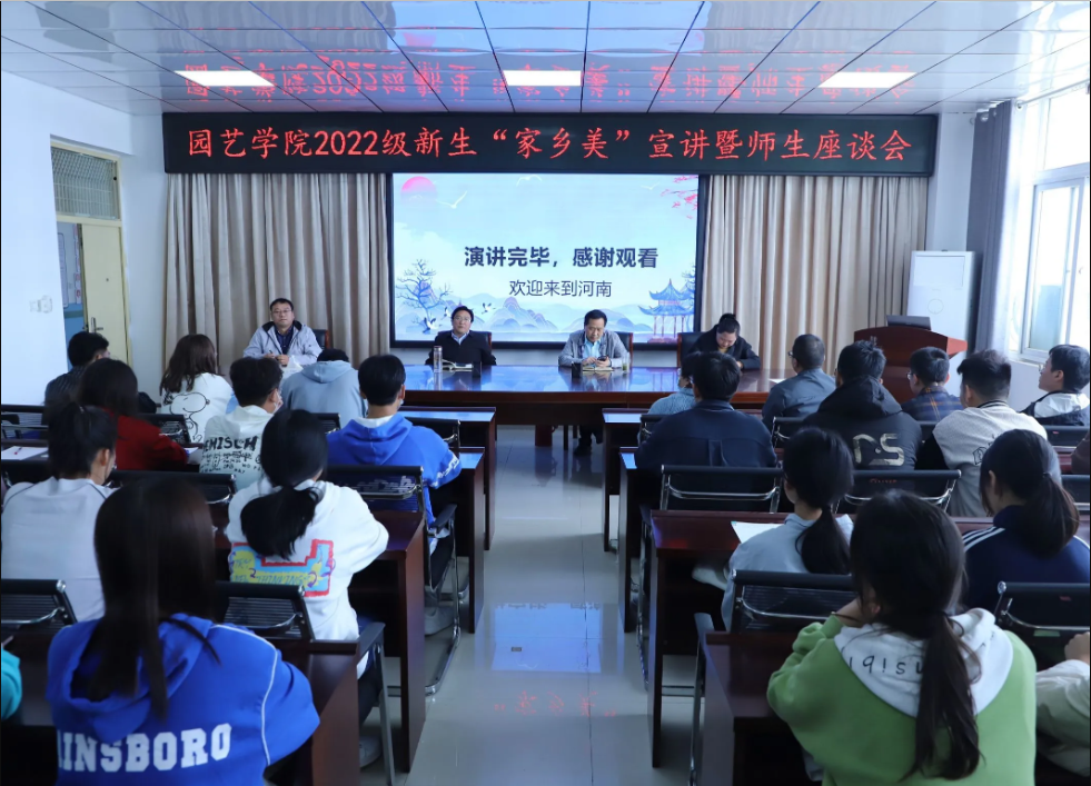为精准落实立德树人根本任务,增加师生之间及学生之间相互了解,更好服务广大师生,10月9日中午,园艺学院在实验楼2A322会议室举办2022级新生“家乡美”宣讲暨师生座谈会。园艺学院党总支书记张祖成、院长龚守富、副院长刘松虎、2022级班级辅导员、2022级各班班长、团支部书记、来自新疆、山东、浙江、安徽、河南五个省份的学生代表参加了宣讲座谈会。党总支副书记陈丽文主持座谈会。