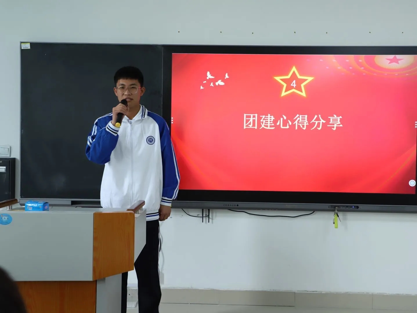 活动伊始,全体参会人员起立齐声高唱共和国国歌和共青团团歌后面向团旗一起重温入团宣誓誓词。大家高举右手,心潮澎湃,声音洪亮,宣誓结束后掌声雷动。团员代表刘志远和路静云分享了4月1日跟随班级到新县实地学习大别山精神的心得体会,自豪、激动的心情溢于言表,参观、鞠躬、献花、高唱“歌唱祖国”的兴奋劲儿至今萦绕在脑海,大别山精神永远激励大家努力学习,砥砺前行。张相坤进行了“学党史,弘扬大别山精神”宣讲,分别从大别山人民在大革命时期、土地革命时期、解放战争时期缔造的历史辉煌进行党史讲解,对“坚守信念、胸怀全局、团结奋进、勇当先锋”的大别山精神作了详细阐述。
