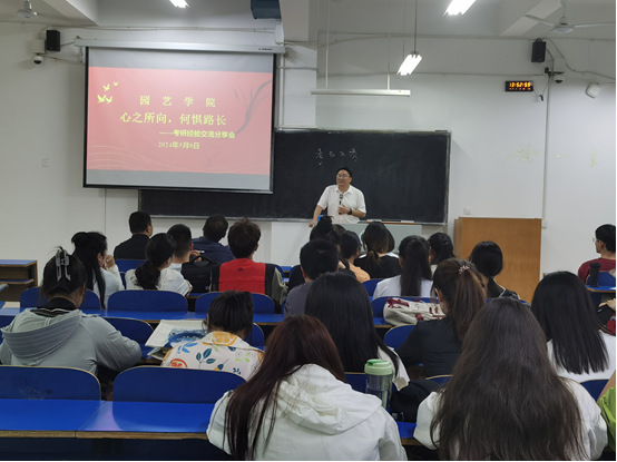 为进一步营造浓厚的考研氛围,提高学生考研热情,坚定考研决心,明确考研规划,5月8日中午,园艺学院在一教A104召开“心之所向,何惧路长”考研经验交流会。院党总支书记杜丽、院长龚守富、副院长刘松虎、申君、辅导员代表和21级、22级备考学生参加了交流会。会议由团总支书记王磊鹏主持。