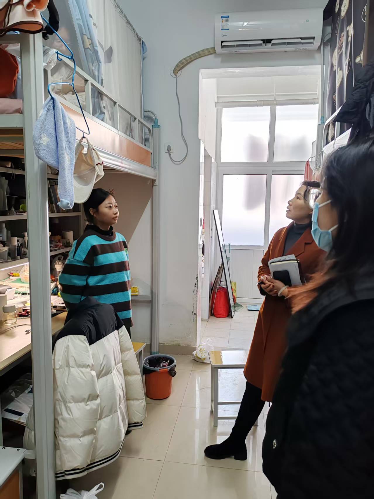 在走访过程中,学院领导、辅导员老师们与同学们亲切交流,详细询问假期生活、学习计划及返校后的适应情况,鼓励学生们在新学期树立明确目标,合理安排时间,积极投身学习与校园活动,同时也要注重身心健康,保持良好的生活习惯。辅导员们仔细查看了各个宿舍的卫生状况,同时对宿舍用电安全、消防设施等进行了全面排查。对于发现的问题,领导和老师们当场提出整改建议,并要求学生立即落实,强调安全无小事,宿舍安全与卫生关乎每一位同学的学习和生活质量。