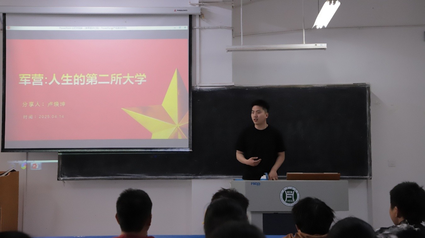 为进一步加大征兵宣传力度、普及征兵政策,激发广大青年学子参军报国的热情,鼓励和引导大学生应征入伍,使青年就业目标趋于多元化,园艺学院于4月14日中午在一教A104召开国防教育暨征兵宣讲会,会议由园艺学院武装专干马敏主持,退伍复学学生卢焕坤、胡卓渲做分享报告。