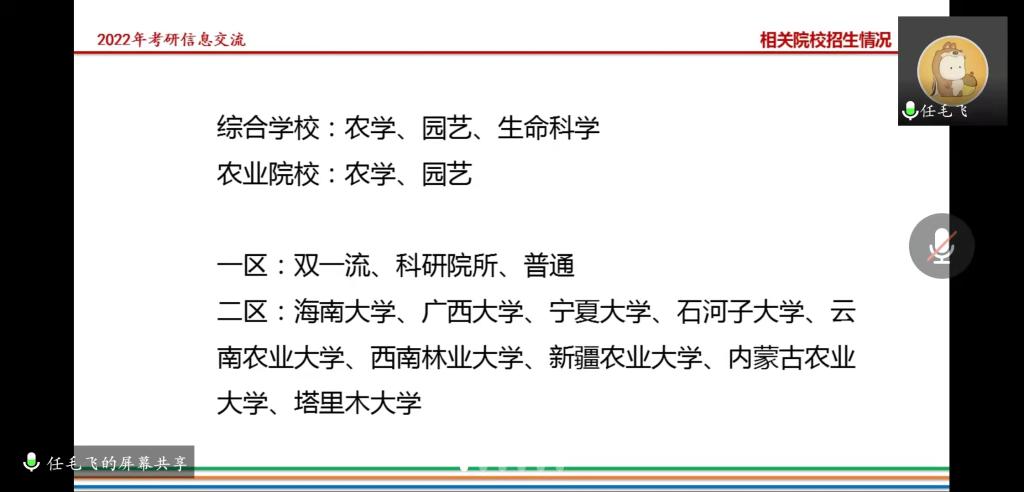 4月3日晚上8:00,园艺学院举办2022届毕业生考研复试技巧及调剂注意事项线上辅导专题会。院长龚守富、党总支副书记陈丽文、全体考研过国家线准毕业生参会,会议特邀湖南农业大学在读博士任毛飞做复试技巧及调剂注意事项讲座及在线答疑。龚守富主持会议。