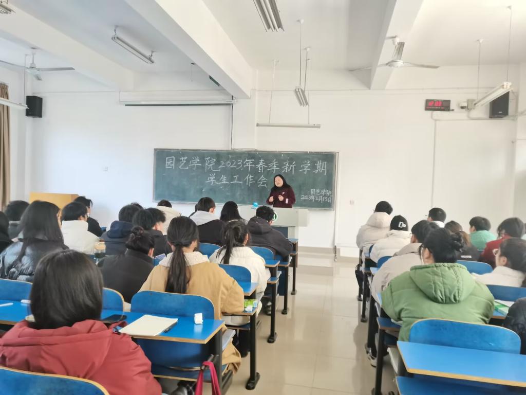 2月15日中午,园艺学院在1缴C104举办2023年度春季新学期学生工作及全体干部培训会。党总支副书记陈丽文、学院全体学生干部及各班班长团支书参会。