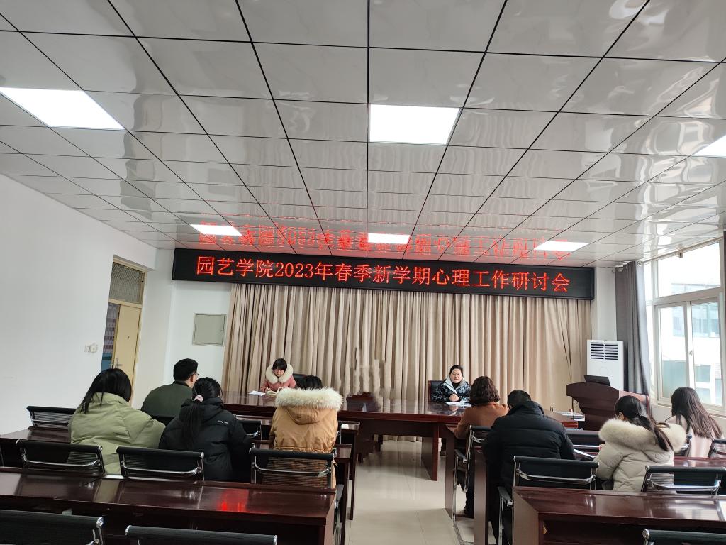为提高辅导员心理工作知识和技能水平,2023年2月16日,园艺学院在2a318会议室召开新学期心理工作研讨会,校心理健康教育中心副主任尚会静、园艺学院党总支副书记陈丽文、全体辅导员参加。