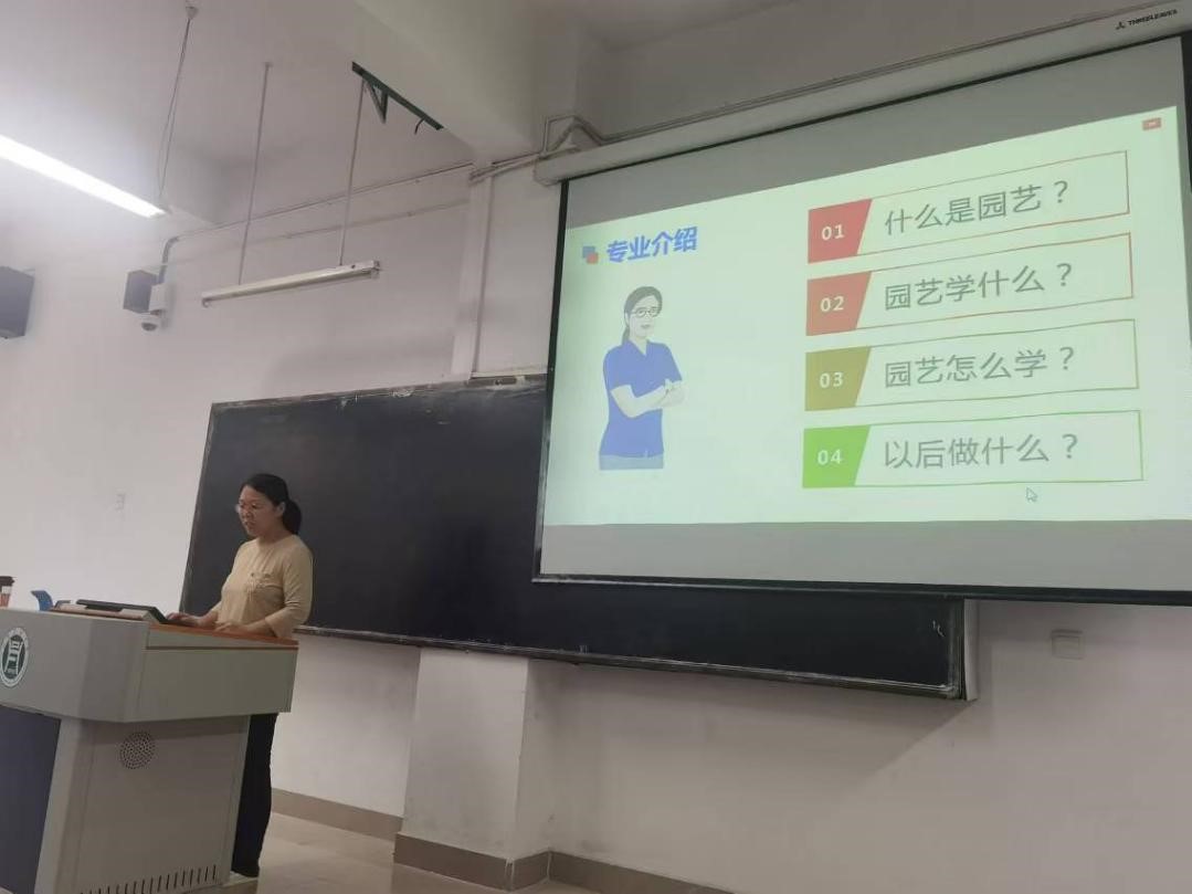 本次课程由园艺教研室主任张莹丽主讲。张老师详细介绍了园艺学院的历史沿革、办学特色及师资力量。她强调,园艺专业不仅是种植果树、蔬菜和花卉那么简单,它更是一门集经济价值与观赏价值于一体的综合性学科。园艺学院拥有果树学、蔬菜学、观赏园艺学等多个研究方向,为学生提供了丰富的选择和发展空间。随后,张老师还详细介绍了园艺专业的课程设置及教学特色,不仅包括植物学、植物病理学、生物化学、遗传学等基础课程,还包括园艺植物栽培学、园艺植物育种学、插花艺术等实践课程。这些课程不仅注重理论知识的传授,更强调实践技能的培养,旨在培养具有扎实专业基础知识和实践能力的应用型人才。