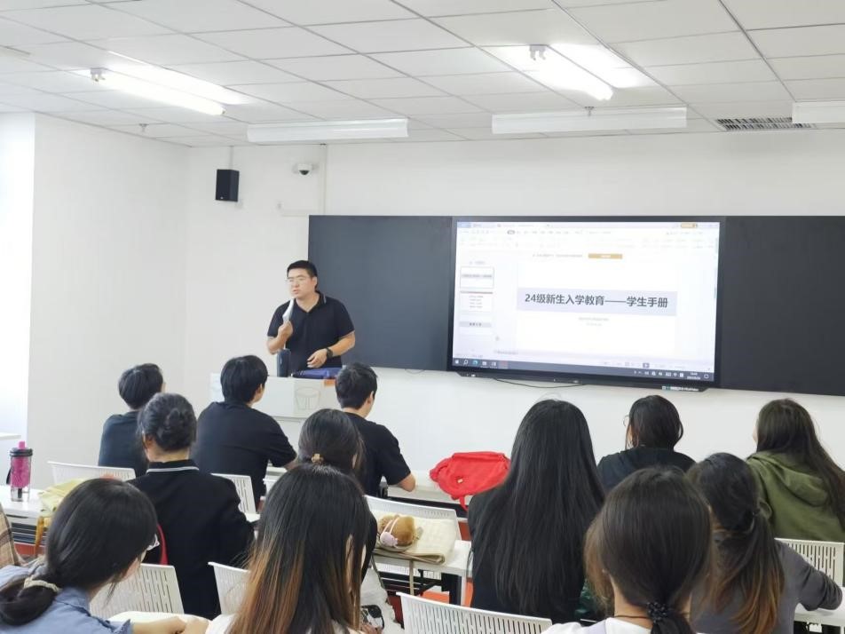 为帮助园艺专升本2024级新生尽快适应大学生活,全面了解并遵守学校规章制度,园艺学院于2024年9月24日举办了专升本新生入学教育——深入学习学生手册,此次课程由专升本辅导员张林涛老师主讲。
