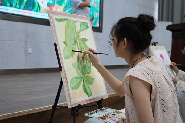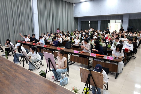 成果展现场,种花小达人们纷纷上台分享自己的种植心得,讲述和花儿一起成长的点滴故事与深刻感悟;风景园林艺术学院的学生代表挥毫泼墨,用画笔描绘出自己心中那朵独特的“花”,为种花小达人们送上了一份特别的礼物;园艺学院学生彭晓玉带来的歌曲《送你一朵小红花》将现场气氛推向了高潮。