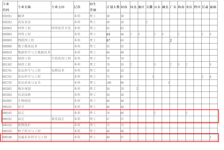 园艺学院2020年计划招园艺专业本科生107人、其中山东和重庆生源2人,设施农业科学与工程本科生40人、其中新疆生源3人。