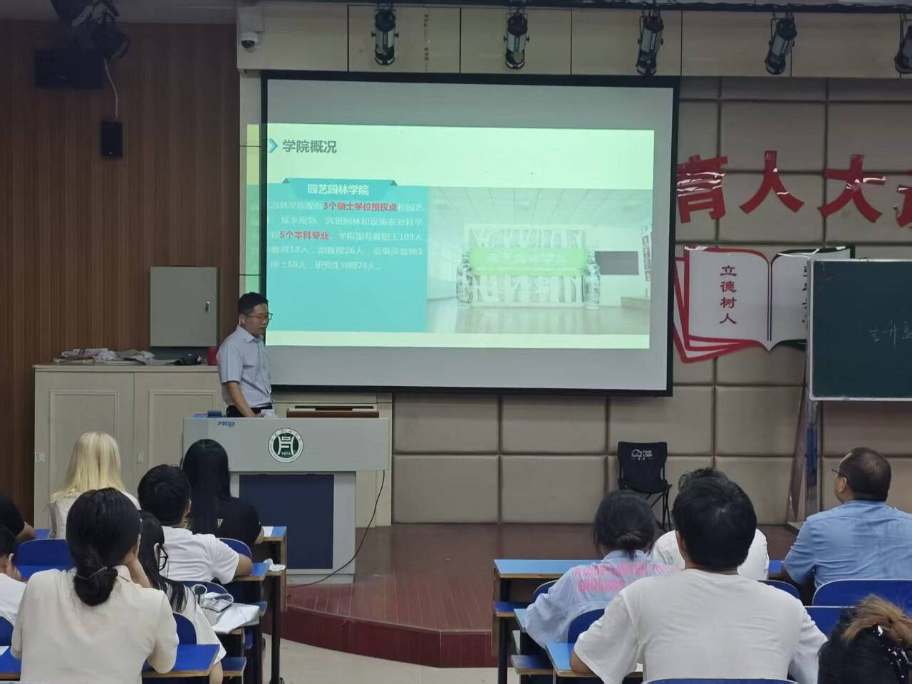 孙涌栋教授还从2026年园艺专业研究生招生计划、报考条件、奖助体系等方面展开详细说明,通过具体案例直观展现升学优势,使在场学子对河南科技学院园艺专业研究生培养模式有了全面了解。园艺学院院长龚守富在发言中表示,此次宣讲为学子搭建了“家门口了解优质院校升学信息”的平台,希望同学们把握机会,结合自身规划积极对接。