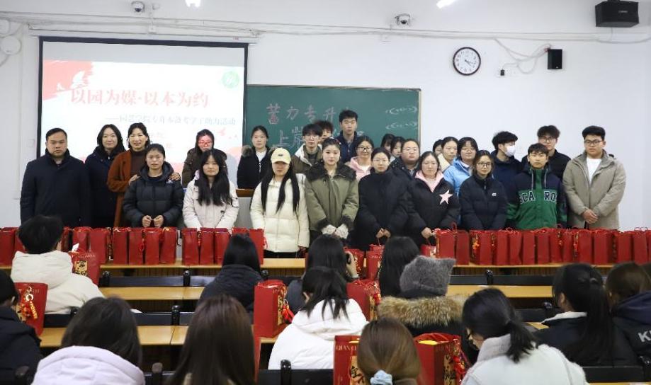 为鼓舞专升本备考学子士气,缓解考前压力,增强学生的归属感与备考信心,2026年3月6日下午三点,园艺学院在第二教学楼115教室隆重举办“以园为媒·以本为约”专升本备考学子暖心助力活动。学院领导、教师代表与专升本备考学生齐聚一堂,共同见证这一温暖而有力的时刻。