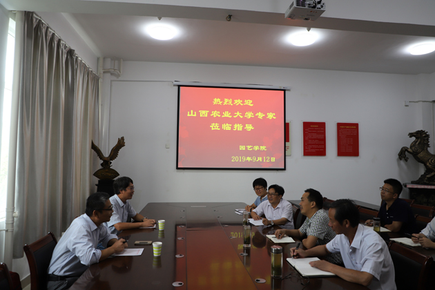 2019年9月12日,山西农业大学园艺学院副院长温鹏飞、果树系主任张鹏飞莅临我院进行指导。园艺学院党总支书记张祖成、院长龚守富以及部分专业教师参加座谈会。座谈会由院长龚守富主持。