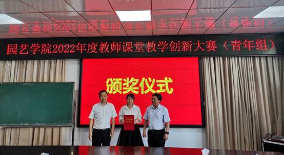 为鼓励教师更新课堂教学观念,聚焦教学创新,推动教学革命,不断提高教学创新能力,引导教师潜心教书育人,强化课程思政,全面提高教育教学质量,园艺学院分别于6月10和13日在实验楼2A322举办2022年度教学课堂教学创新大赛--新进教师组和青年组,由副校长赵一鹏、学院全体班子成员、教研室主任和教师代表张琰和冯志敏担任竞赛评委。园艺学院全体教师参加,新进教师组和青年教师组分别由教研室副主任王亚坤和蔡东升主持。