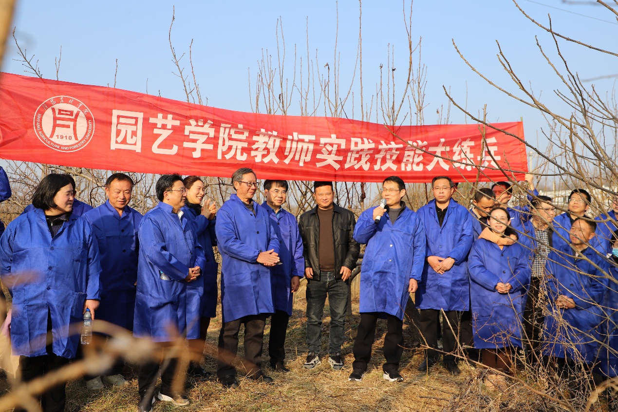 为全面提升教师的实践教学能力和服务乡村振兴的基本技能,2024年1月13日,园艺学院分别在校内实习基地“馨园”和校外实习基地信阳市青河湾生态农业科技有限公司开展冬季实践教学技能大练兵活动。副校长赵聘、农林实习场场长胡汉升、原科技处处长史洪中、国资处处长张凯、科技处副处长朱庆松、教师发展中心副主任邵颖、林学院院长王辉、果树学专家范宏伟、林学专家孙耀清、植保专家周洲、园艺学院全体教师及林学院部分教师参加本次活动。大练兵活动由园艺学院院长龚守富主持。