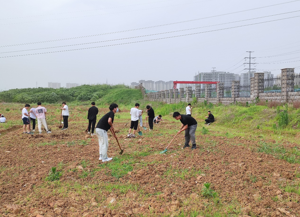 同学们在校内二期实习基地整地除草为花田制作做好前期准备