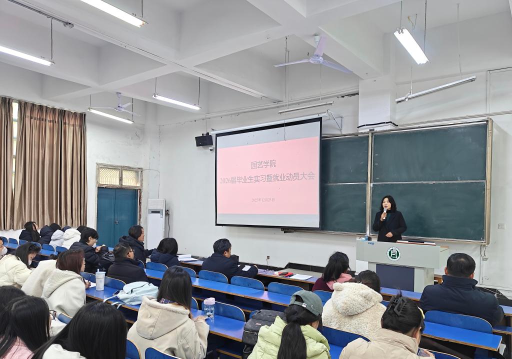 为扎实推进毕业生实习工作,引导2026届毕业生明确实习目标、树立安全意识、顺利完成从理论到实践的过渡,2025年12月25日周四上午,我院在1教E102教室召开了2026届毕业生实习动员大会。会议由学院分管教学的副院长申君主持,学院领导、相关教师、全体准毕业班辅导员及2026届全体毕业生共同参加了此次大会。