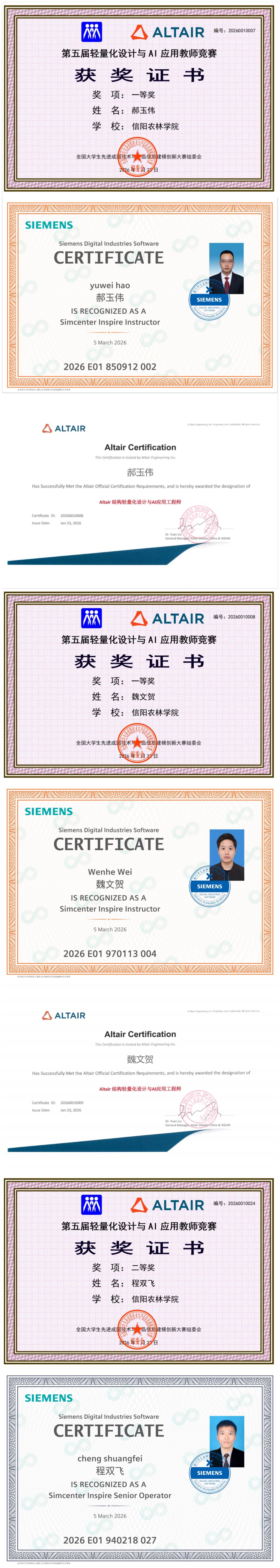 经过在线培训-作品打磨-专家评审,beat365在线平台官网园艺学院魏文贺、郝玉伟两位教师凭借扎实的专业功底、创新的设计思路,荣获竞赛一等奖,同时获得澳汰尔工程软件产品工程师及西门子工业软件Instructor教员认证证书;程双飞教师表现突出,荣获二等奖及西门子工业软件Senior资深级认证证书。三位教师的参赛作品紧密结合农林智能装备领域需求,将轻量化理念与AI技术深度融合,兼具教学实用性与产业应用潜力。