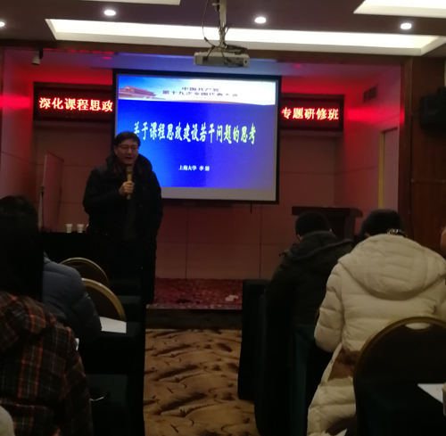 上海大学李梁教授、天津外国语大学郭建校教授、上海交通大学彭崇胜教授受邀对本培训班学员做了报告,报告分别为《关于“课程思政”建设若干问题的思考》、《基于“课程思政”的教学改革与教学研究——以统计学为例》、《课程思政策略与路径——我对课程思政的理解与教学实践》。精彩的报告引发了参会教师对课程思政的认真思考:为谁育人?如何育人?育什么样的人?