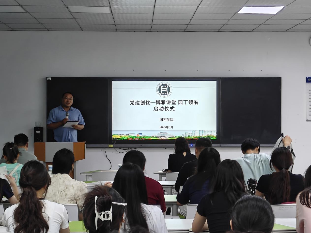2025年6月18日下午,园艺学院在2B308智慧教室举行“博雅讲堂·园丁领航”系列讲座开讲活动,学院领导班子和师生代表参加了活动。活动由副院长刘松虎主持,二级教授张琰担任主讲。