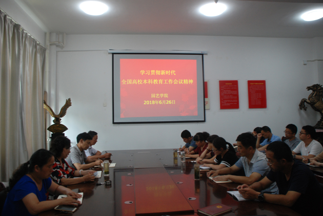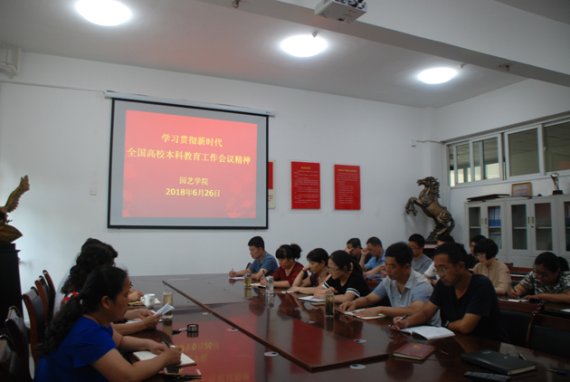 6月26日下午,园艺学院在2A318会议室组织全体教师学习贯彻新时代全国高校本科教育工作会议精神。会议由园艺学院党总支书记冯世龙主持。