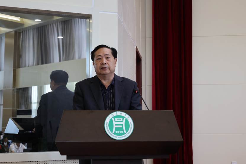 随后,陈廷森代表信阳市油茶产业协会进行了祝贺和发言:大别山油茶学院是beat365在线平台官网与信阳信锐油茶股份有限公司为践行习近平总书记关于油茶产业发展重要指示精神,推动大别山革命老区油茶产业高质量发展,进而巩固脱贫攻坚成果,助推乡村振兴而创办的产业学院,为信阳市油茶产业提供了人才和智力保障,号召同学们积极投身到油茶行业当中,并表示信阳市油茶行业协会将继续给予大别山油茶学院大力支持,为油茶产业人才培养保驾护航。