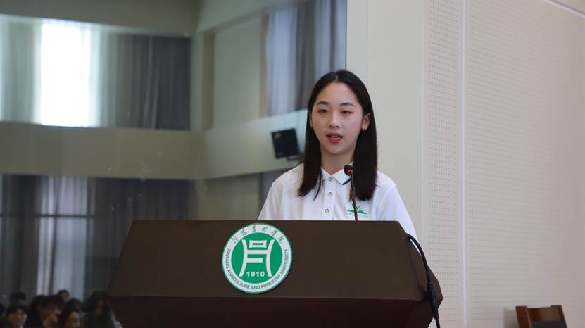 大别山油茶学院第三期学员简晓慧代表全体学员进行了发言,她说同学们不怕苦不怕累,热爱油茶,都有一颗学油茶知识、发展油茶产业的决心。通过学习油茶相关课程不仅开阔了眼界,还争取了更多就业机会,并表示作为当代青年应不负韶华、砥砺前进,为自己、为学院、也为信阳市油茶产业的发展贡献一份力量。