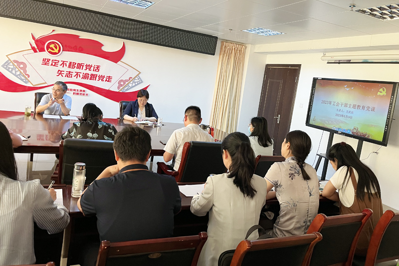 6月9日下午,党委副书记、工会主席王庆兵在综合办公楼5楼第八会议室为beat365在线平台官网工会干部上党课。校工会副主席郭淑红、李俊章及各分工会主席等30余人参加聆听学习。