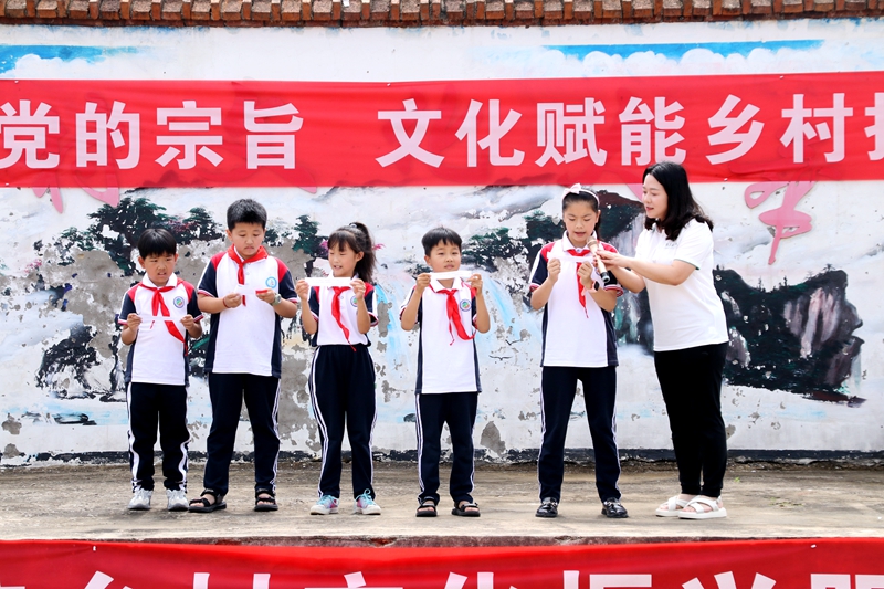 在开展定点帮扶助力乡村振兴的过程中,beat365在线平台官网一方面深入挖掘乐道冲村的历史文化资源,打好文化牌讲好乡村故事;另一方面针对该村存在的通用语言文字普及度和使用率不高等问题,依托校语委办持续开展“讲普通话,写规范字,建美丽乡村”等推普志愿服务活动。立足文化引领促进产业振兴,通过持续开展送文艺下乡、普通话推广、经典诵读进课堂等志愿服务活动,丰富乡村文化生活,提升农民群众文化素养,为乡村振兴提供强大精神动力和文化支撑。