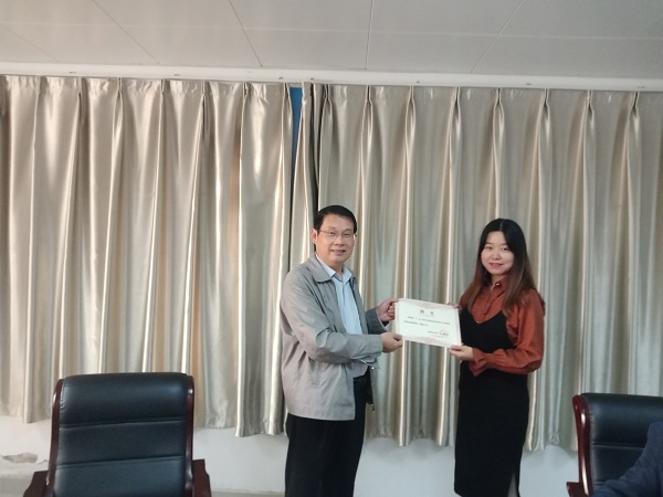 中心实验室招募兼职仪器设备管理员的目的、意义,并向报名者及其所在学院表达了谢意;重申了兼职管理员的职责和待遇。赵聘副校长逐一为22名兼职仪器设备管理员颁发聘书并宣布他(她)们正式成为中心实验室仪器设备管理成员。颁证仪式结束后,大家就中心实验室的建设和管理献言献策,提出意见建议。