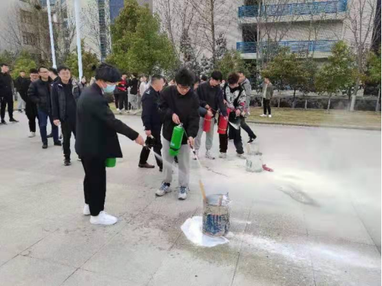 首先,孙老师对参训师生进行实验室安全知识专题培训。他从消防器材的种类及各自使用对象到注意事项进行了一一讲解。随后,在汝宁广场东侧进行了灭火器使用的示范操作,并和师生进行互动交流,参训师生积极参与灭火演练。