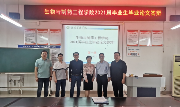 根据《beat365在线平台官网本科毕业论文(设计)管理办法》要求,按照生物与制药工程学院2021届本科毕业生毕业答辩工作安排,5月22日下午,生物与制药工程学院校企共育毕业生论文答辩在实验楼2C527会议室顺利举行。院长段鸿斌出席答辩会,生物制药教研室主任王伟副教授担任答辩小组组长,合作单位上海瑞博化学有限公司常务副总经理刘继红、技术总监窦海建与我院两位教师共同担任评委。答辩会由王伟主持。